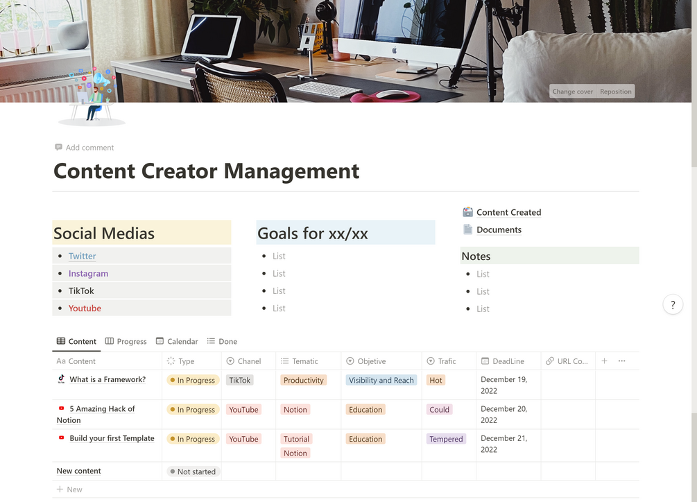 Notion Template que te permitira tener un workspace para la organización de tu contenido