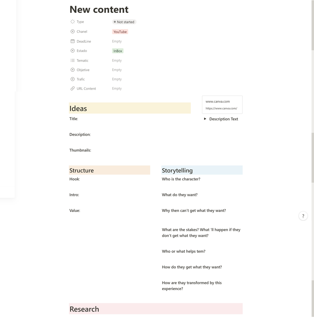 - Pages to access and save documents or files that you have already created, taking advantage of the unlimited storage of Notion.