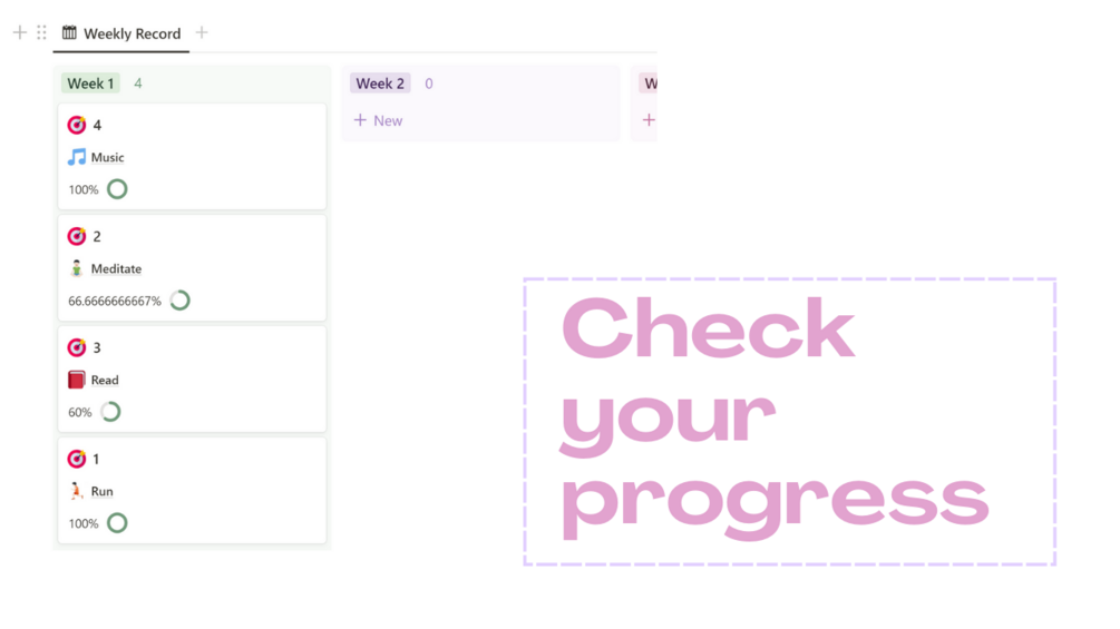 Inside the product, you'll find a template where you can record your habits and goals month by month, completing a weekly tracker.