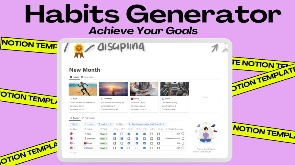 Take control of your habits and reach your goals with the new Habits Generator template! (English - Spanish)