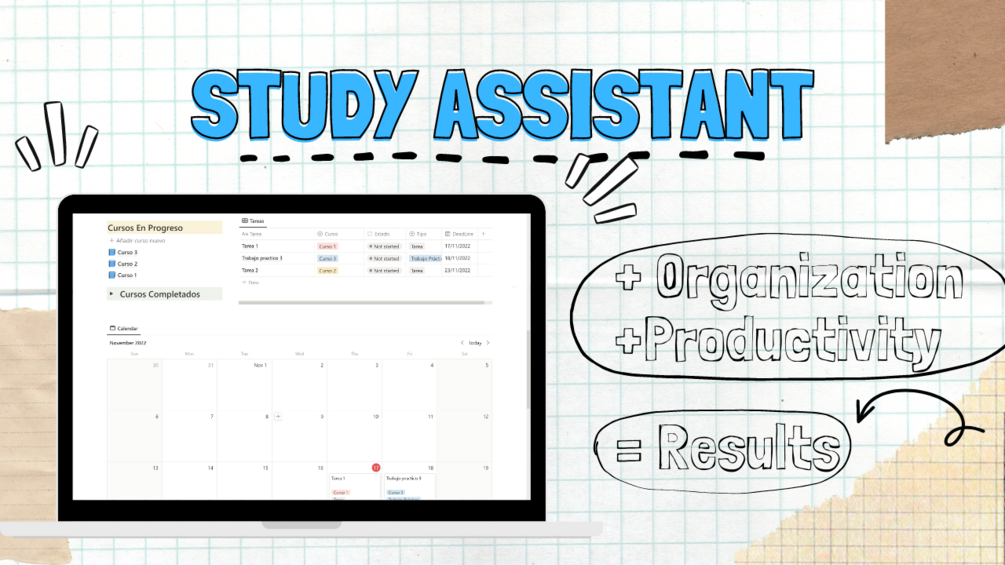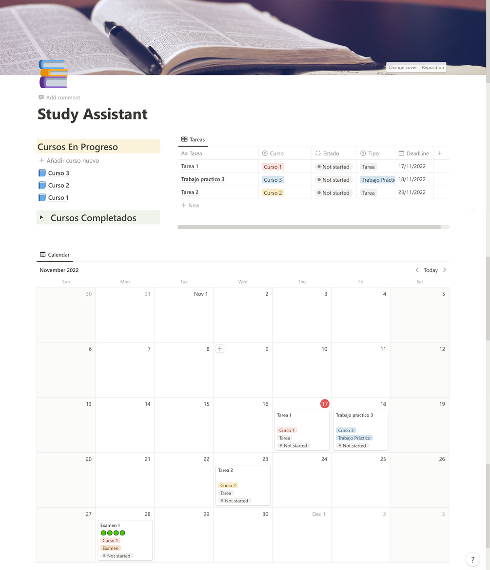 Study Assistant, es un Notion Template en el cual un estudiante va a poder organizar y centralizar sus estudios de una manera optima, intuitiva y personalizada.